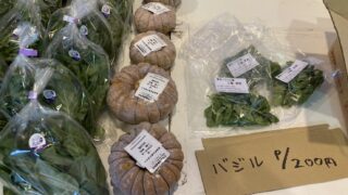 events 10月5日(日)は島市に出しています 今日の島市は、伊ヶ谷のコミュニティーセンターで開かれています。ニラ、サツマイモ、ミョウガ、生落花生、カボチャ、バジルを販売しています。 2025.10.05 eventsいろいろな野菜